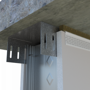 Profile with two slotted legs w/ firestop on both sides. Composite Firestop Deflection Track System for use in fire rated wall assemblies. Legs with slots spaced 1” o.c. for positive attachment to…