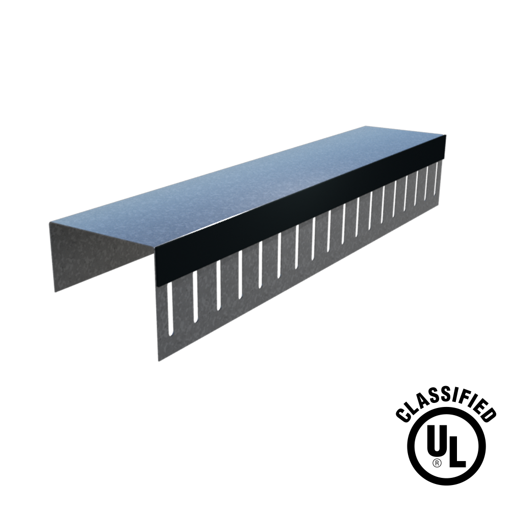 When used in conjunction with BlazeFrame Perimeter L-Bead, SL 1 is UL 2079-fifth edition compliant. Provides joint protection for up to 1" with UL 2079 Class II or III Movement Capabilities. Minimum CP60 coating. One leg with slots spaced 1" o.c. for positive attachment of studs per listed assemblies in UL Fire Resistance Directory. A 2mm thickness of cured intumescent material adhered to metal profiles provides air and smoke seals. When exposed to heat above 375 degrees Fahrenheit, the intumescent material expands up to 35 times its size. This provides protection from heat and flame passage during a fire event.