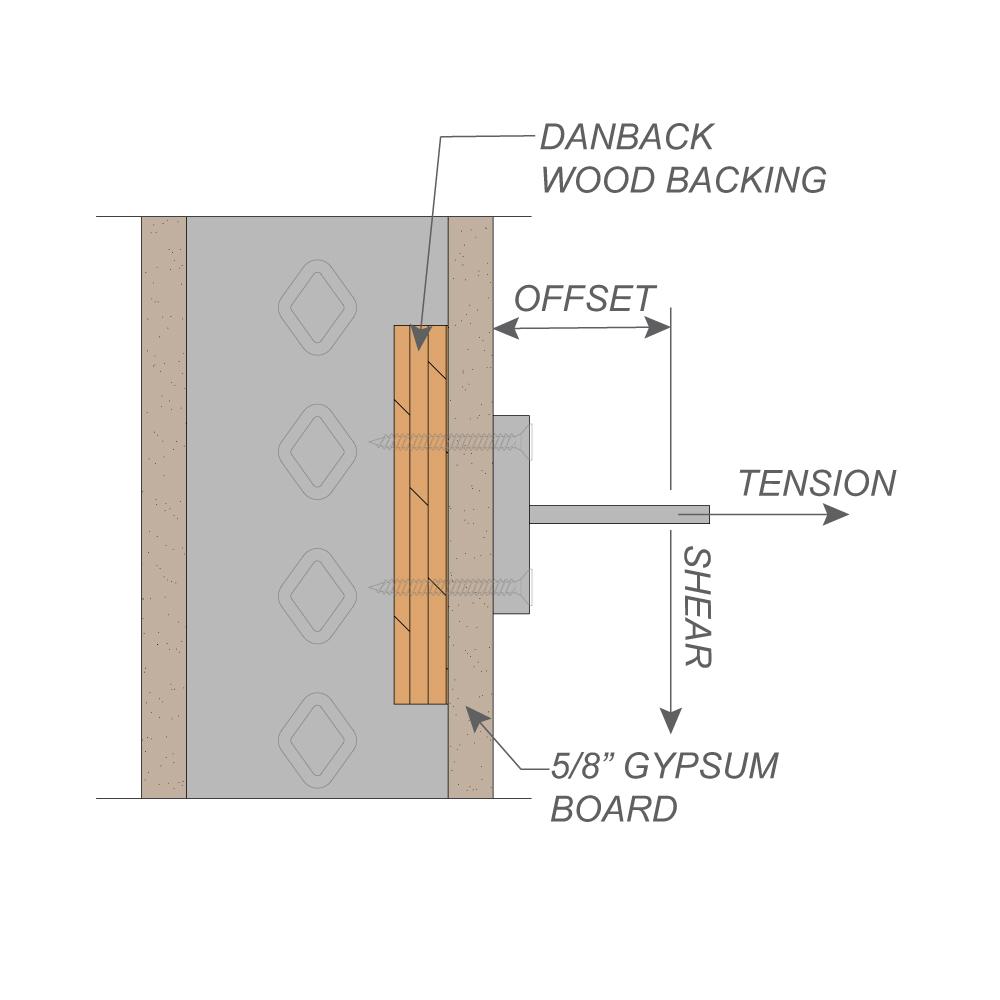 Danback provides superior connection shear and pullout strength to support and meet even some of the heaviest loading conditions.  Simply snap, flex and screw Danback into place.  The patented hinge design actually flexes around the stud and snaps into place for a perfect fit-every time.