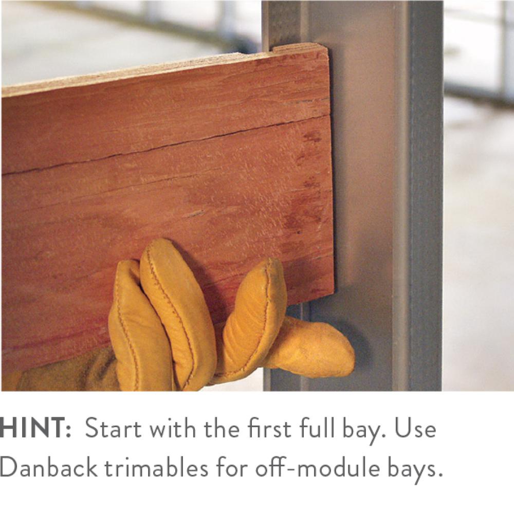 • Hint: Start with the first full bay. Use Danback Trimmables for off-module bays.