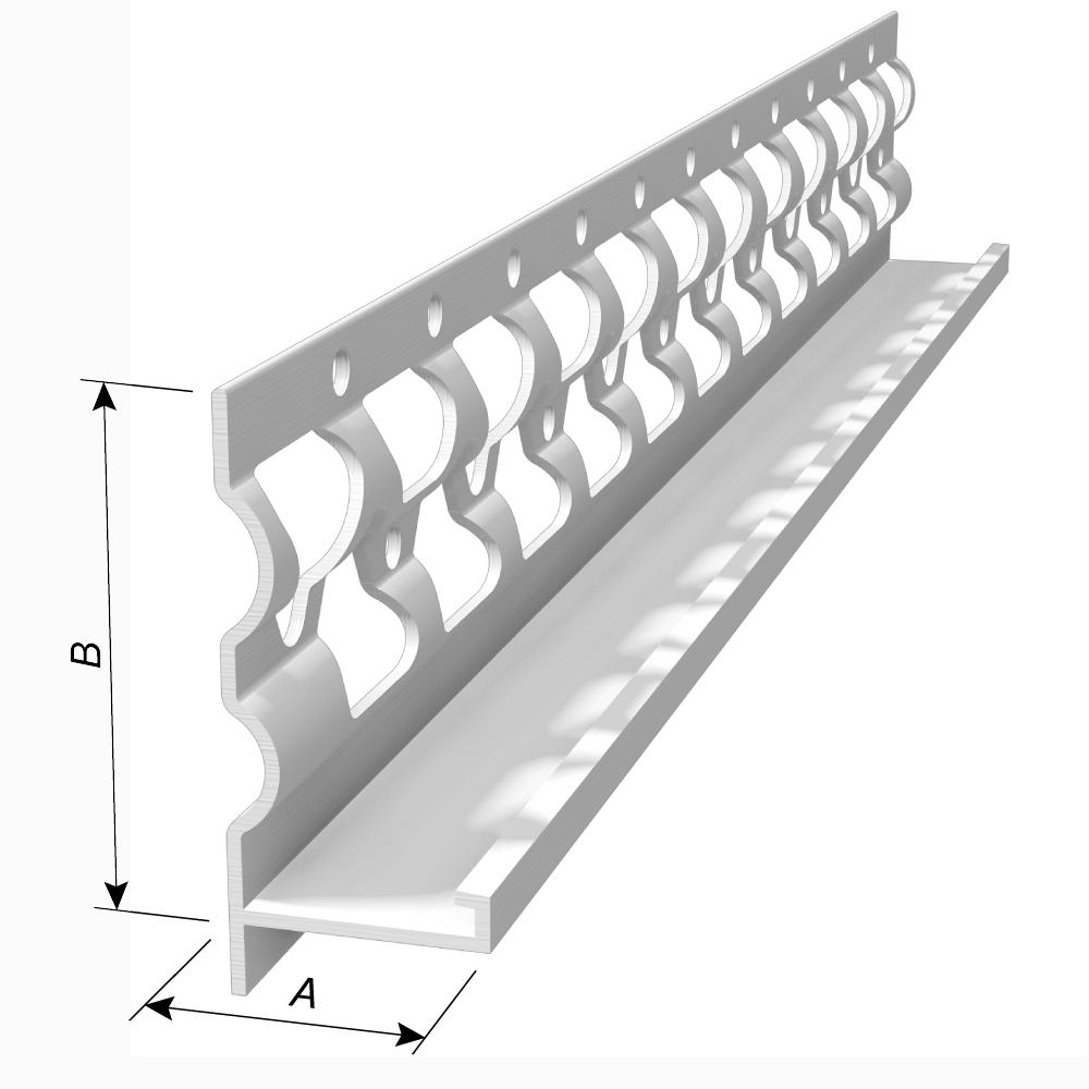 E-Flange allows for more stucco mix to flow through the flange, providing a more thorough and consistent embedment. The unique E-Flange shape also allows for quick and easy tying of lath and other accessories. Larger, triangular perforations allow more stucco mix to flow through and adhere to the substrate, improving embedment with and lath and trims.