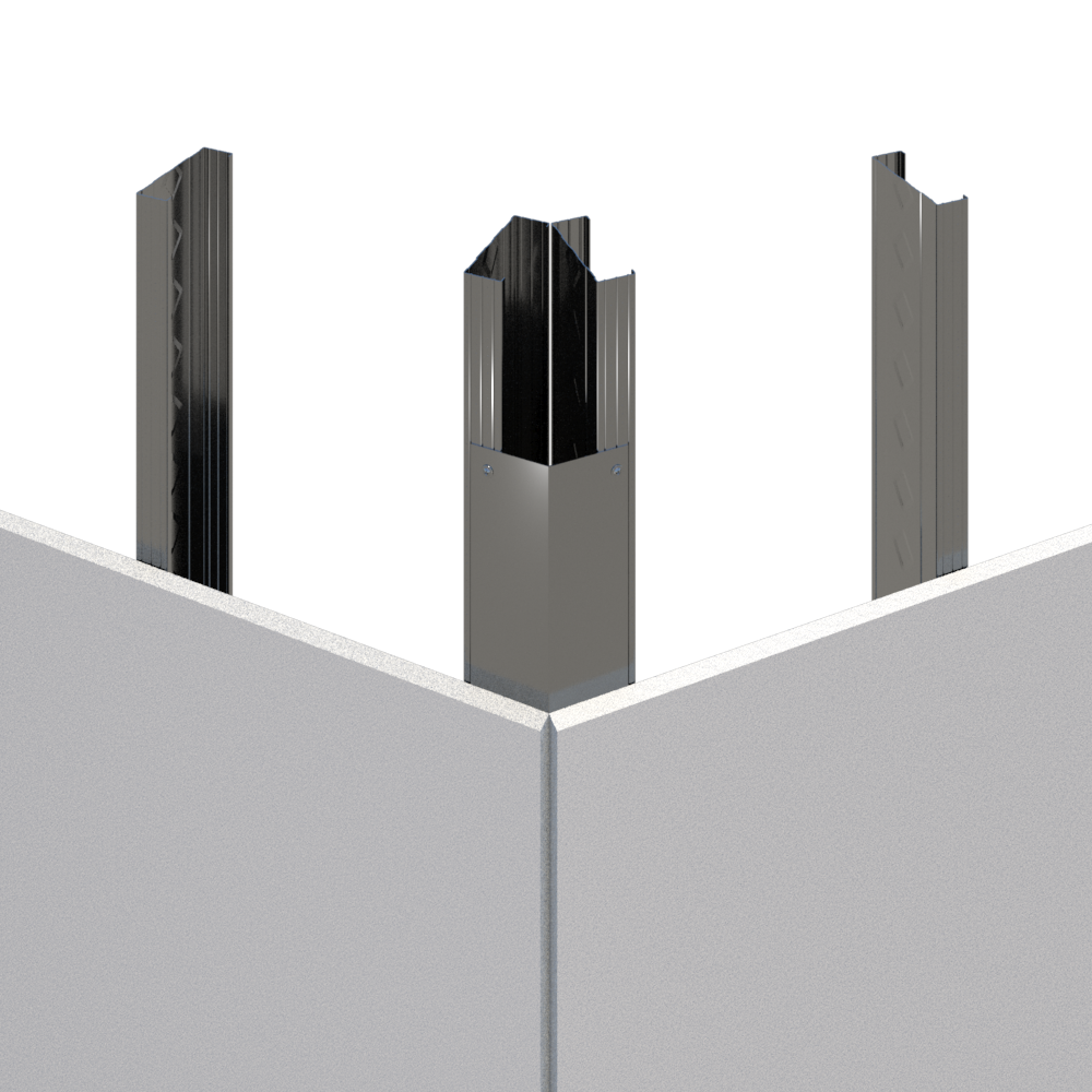 Non-structural corner angles used to connect, reinforce or secure metal stud framing in various drywall applications.