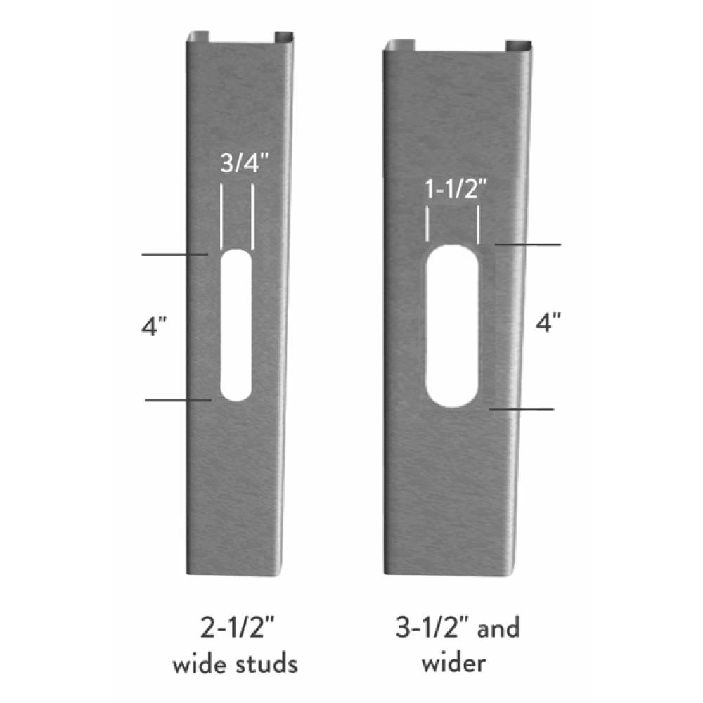 Standard punchout sizing is 1-1/2" x 4" in members 3-1/2" and wider. Members smaller than 3-1/2" are unpunched unless otherwise specified at time of order. If specified, members will be punched with a 3/4" x 4" knockout.