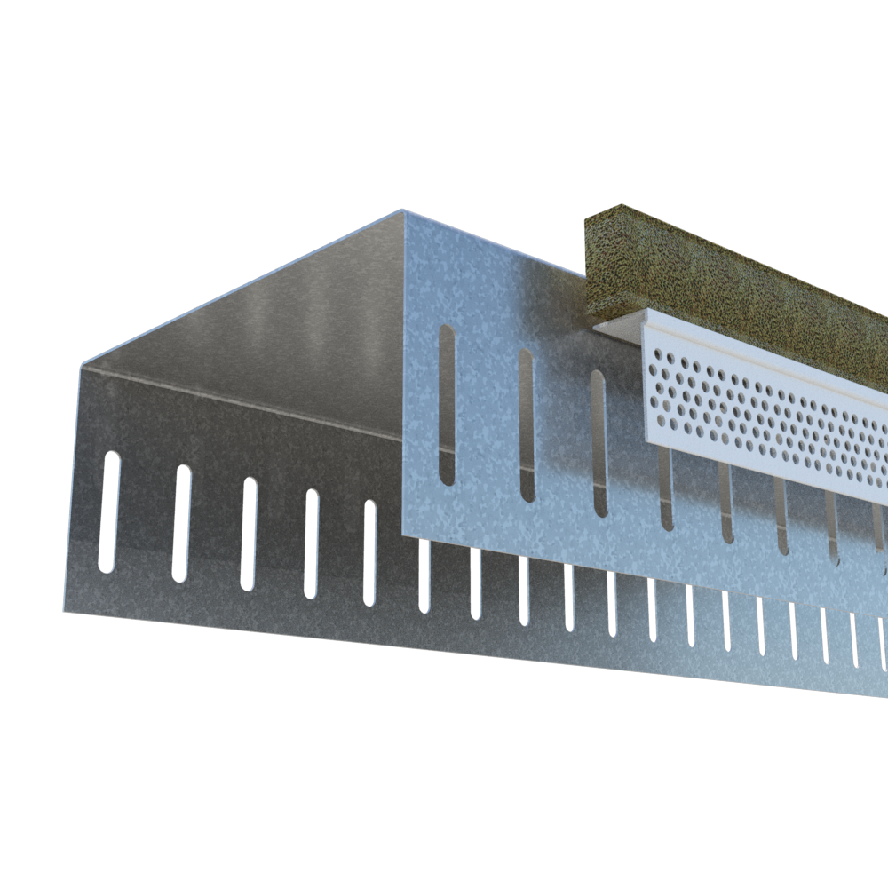 The UltraTRAK slotted system utilizes a UltraTRAK slotted deflection track in conjunction with the UltraBEAD providing a 1 or 2 HR rated assembly for a ¾” max joint and is UL 2079-Fifth Edition compliant. UltraBEAD creates an easy attachment that is attained with staples through the bead flange. Multiple perforations along the 1-1/8" flange enhance strong compound adhesion and the raised shoulder provides for a flush finish. Rigid vinyl is rust proof, dent resistant and easy to field cut without distorting profile or leaving sharp edges and burrs. Deflection track details must be designed for the specific conditions of a building to accommodate the required deflection and end reactions of the studs. Deflection tracks cannot be used in axial load-bearing stud conditions or above continuous window spandrels.